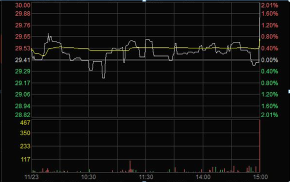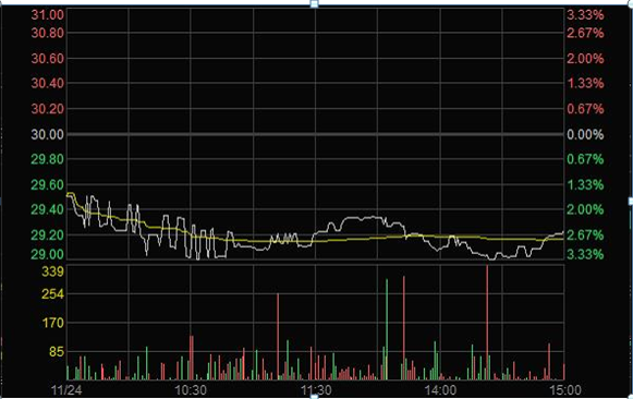 2011年11月24日,在達到操縱股價目的后,任某某將持有的50萬股“X”全部賣出,導致該日股價震蕩下跌。任某某通過尾市三分鐘的操縱賺取近30萬元。(見下圖)